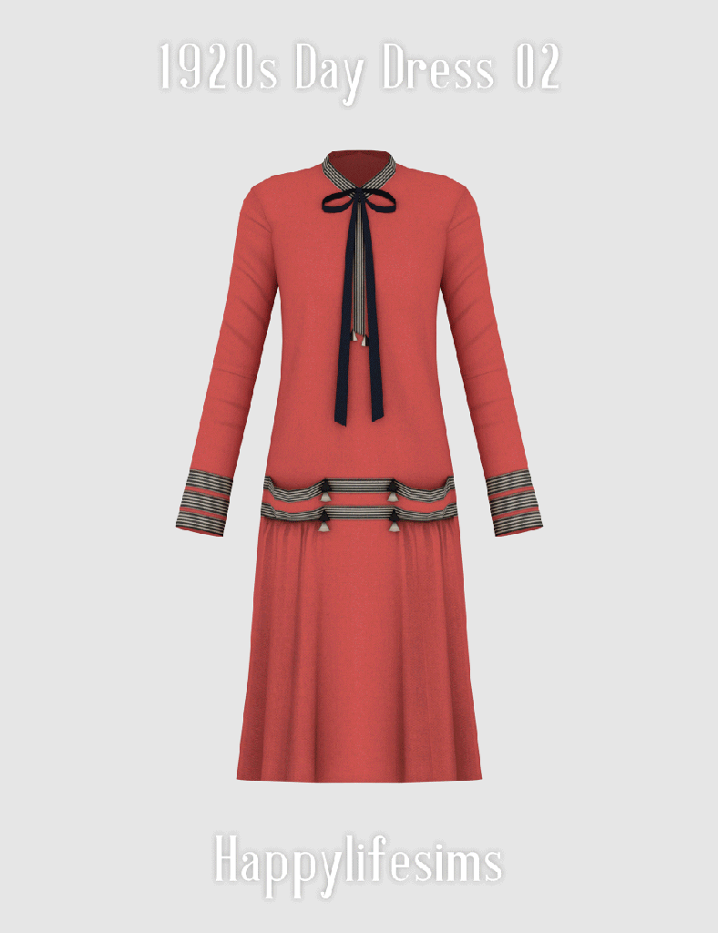 Decorative trim at the cuffs and hip level provides visual interest while maintaining a restrained, practical appearance appropriate for daytime activities. Dresses of this type were worn for routine social outings, work, and informal gatherings, often accessorised with low heels, stockings, and simple hats or cloches.