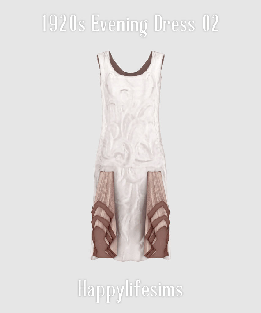 This evening dress dates to the late 1920s, approximately c.1926–1929, and reflects the elegant yet modern sensibilities of women’s formalwear during the latter half of the decade. The dress features a sleeveless cut with a gently scooped neckline and a straight, tubular silhouette that falls loosely from the shoulders, characteristic of late 1920s evening fashion.